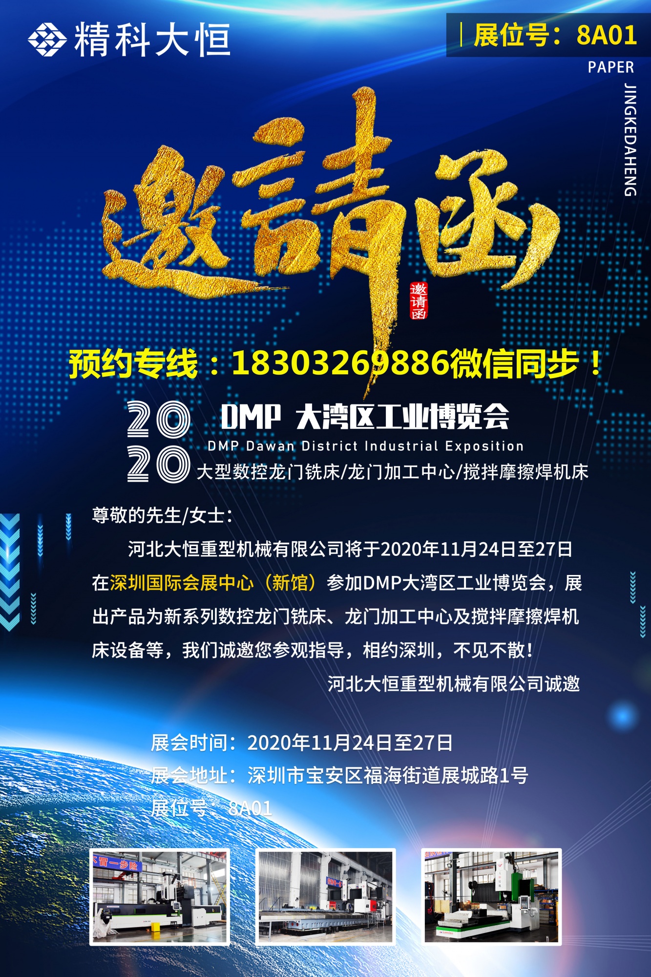 精科大恒歡迎您參加2020年11月24-27日BMP大灣區(qū)工業(yè)博覽會.屆時展銷產(chǎn)品為數(shù)控龍門銑床HDKX2804 數(shù)控龍門加工中心HCK1517 龍門式攪拌摩擦焊設(shè)備DHXK-FSW1517 歡迎各界朋友前...